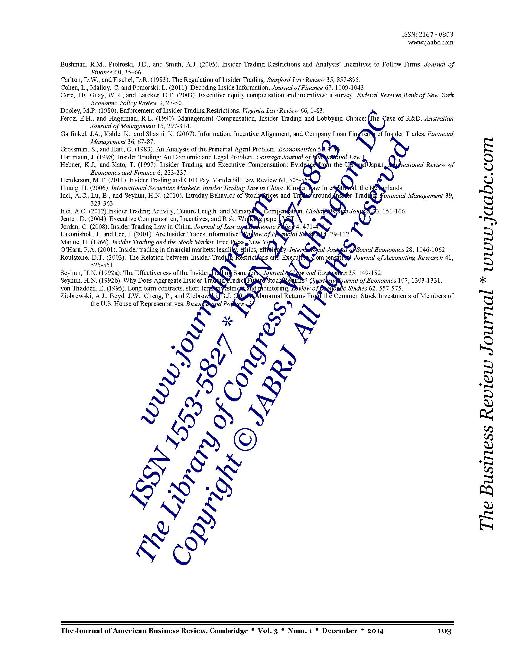 (The Journal of American Business Review, Cambridge) Vol. 3 * Number 1 * December 2014 The Library of Congress, Washington, DC * ISSN 2167-0803 The Library of Congress, Washington, DC * ISSN 1553 - 5827 Online Computer Library Center, OH * OCLC: 940146916 National Library of Australia * NLA: 49026139 The Cambridge Social Science Citation Index, CSSCI, Peer-reviewed Scholarly Journal Refereed Academic Journal Indexed Journal All submissions are subject to a double blind peer review process. |